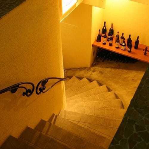 The staircase leading from ground level to the basement creates a sense of exhilaration as you head towards the hidden restaurant.Italian wine bottles are displayed on the landing, creating a unique atmosphere right from the entrance.It is lit up at night, and its stylish appearance makes it an eye-catching spot when meeting up.It's one of those wonderful facilities that will have you excited even before you enter.